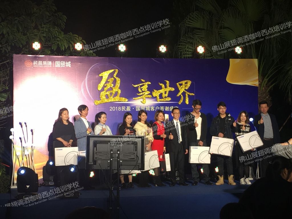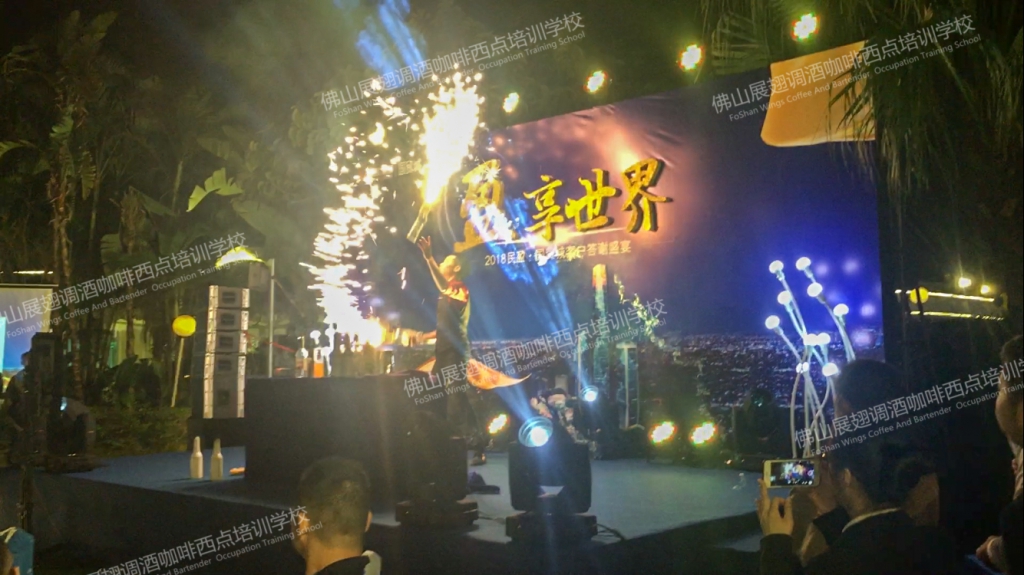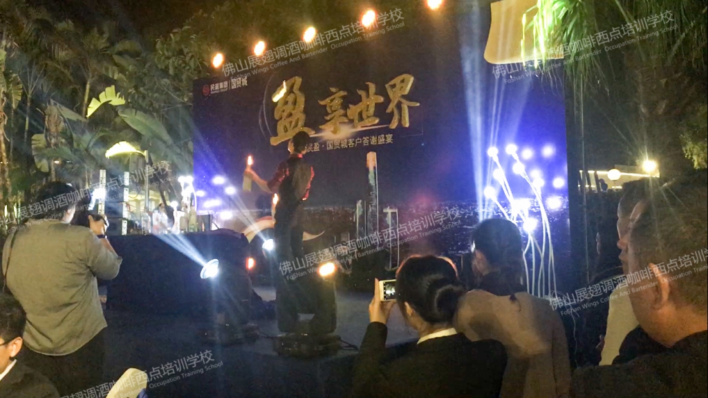 2018年1月19日,“盈·享世界”2018民盈·國貿城客戶答謝宴在水濂山依維薩戶外西餐廳隆重舉行。佛山展翅調酒咖啡西點培訓學校的調酒師應邀參加了此次答謝宴并為現場帶來一場精彩的花式調酒表演。讓我們一起回顧一下現場的精彩表演吧。