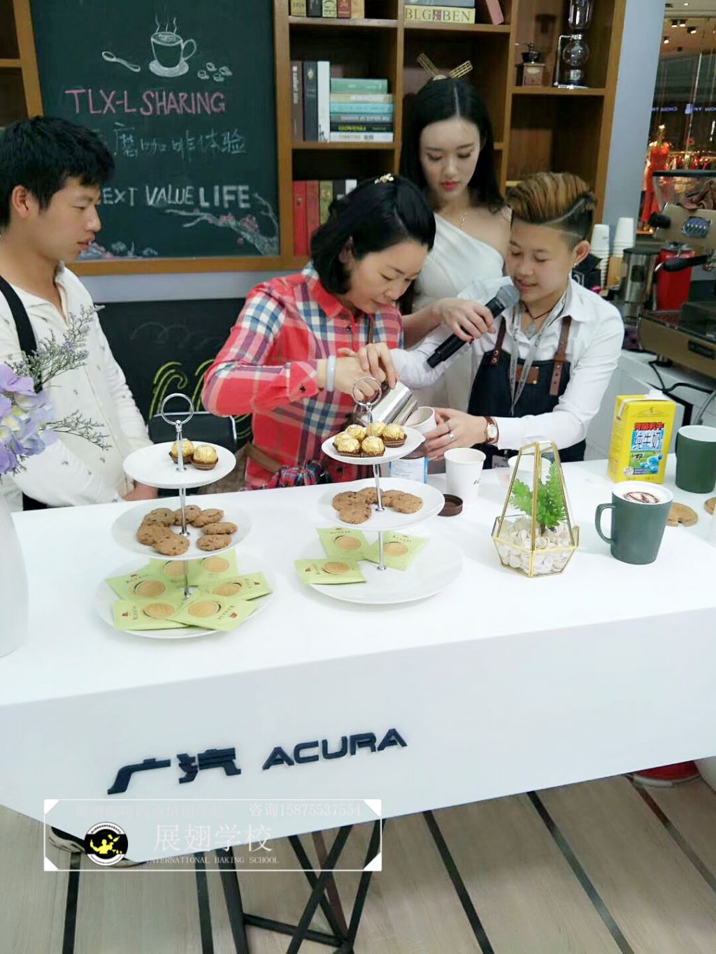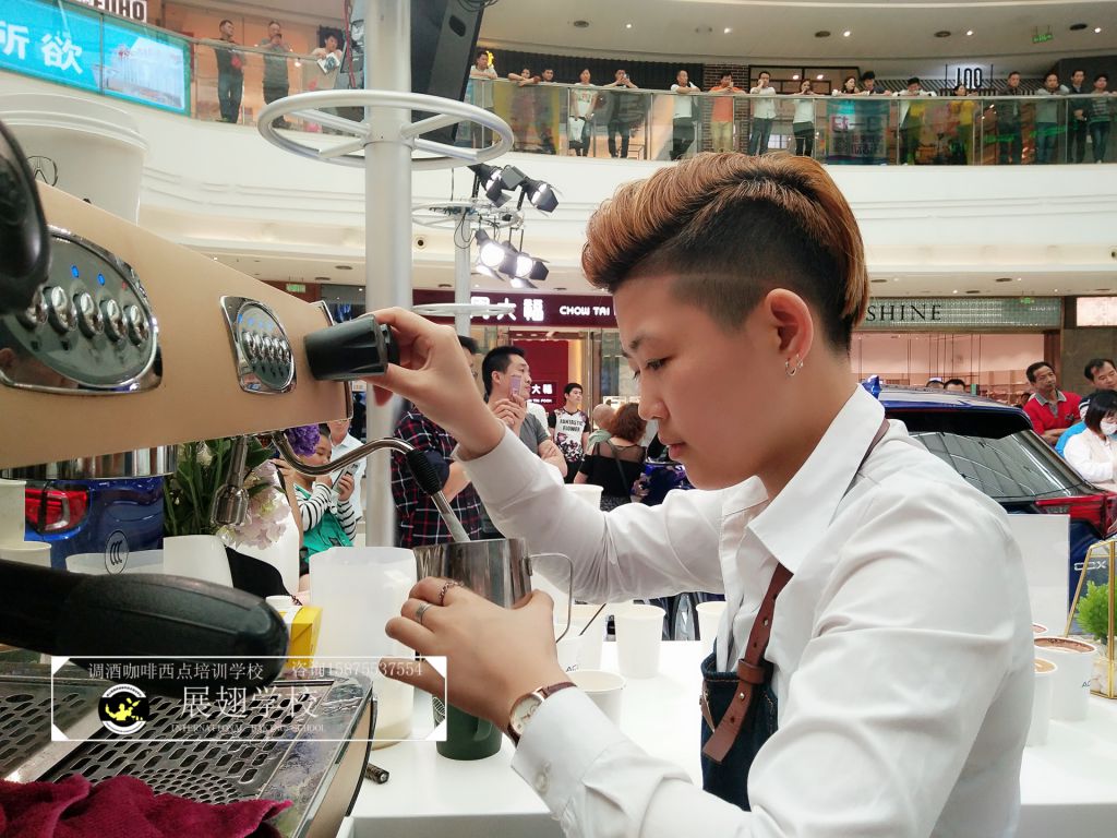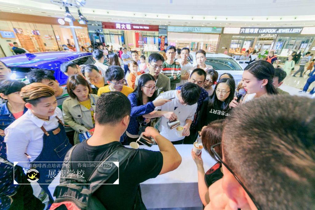 2018年16日~18日,佛山展翅調酒咖啡西點培訓學校的咖啡師參加了廣汽謳歌汽展暖場咖啡拉花活動,不僅現(xiàn)場為觀眾調制咖啡,更在現(xiàn)場教學如何拉花。現(xiàn)場的觀眾朋友不僅能喝到咖啡師制作的美味咖啡,還能體驗一次咖啡拉花的樂趣,用流動的奶泡融合到濃縮咖啡中,并拉出精美好看的圖案。