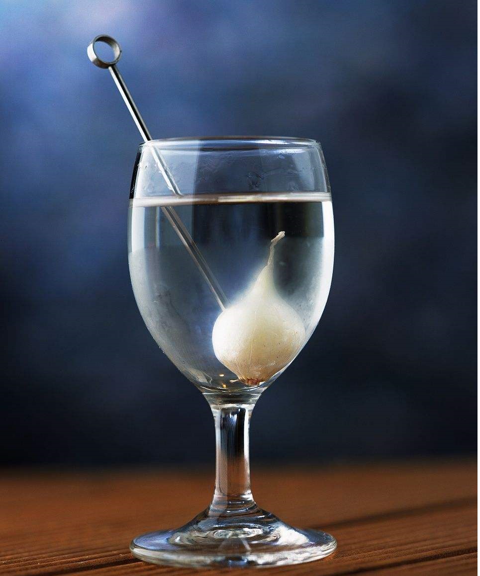 配料:50毫升琴酒,10毫升干苦艾酒,小洋蔥一顆。