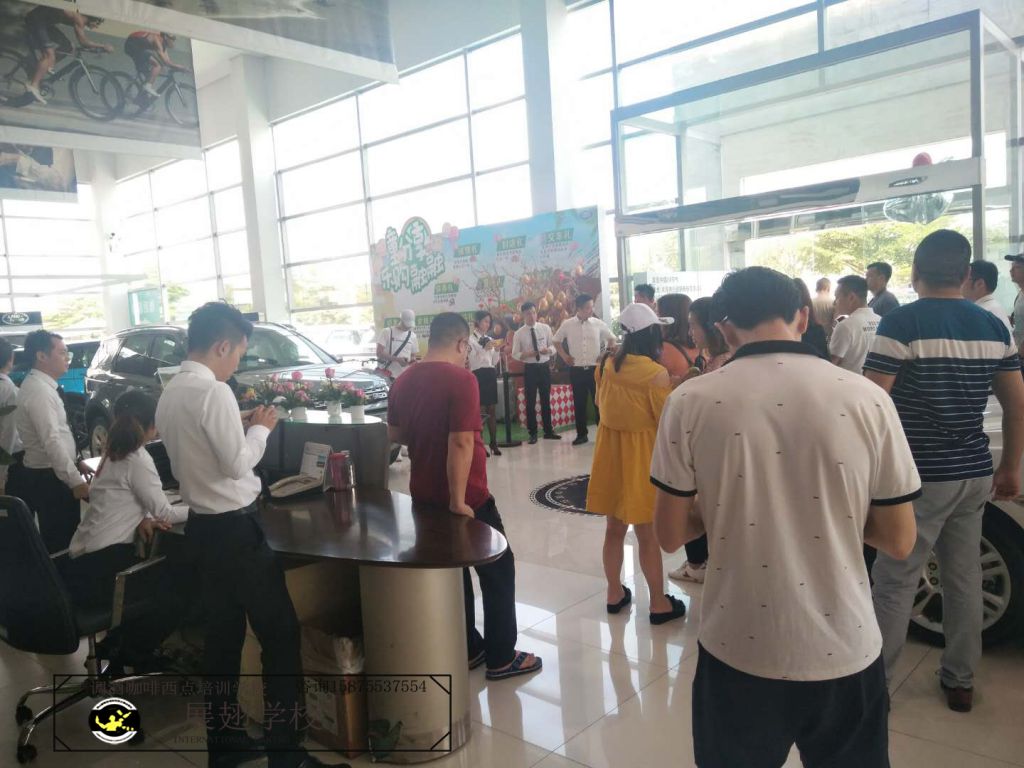 2018年5月19~20日 佛山慶豐捷豹路虎車行再次邀請佛山展翅調酒咖啡西點培訓學校的學員在現場擔任咖啡師,為現場的嘉賓和觀眾朋友們獻上現磨現沖的咖啡,整個現場都飄滿了濃濃的咖啡香味。對于我們的學員來說,這又是一次鍛煉自己拉花水平的機會,也是一次很好的實戰經驗。認真對待每一次的實踐活動,讓自己成長得更快。