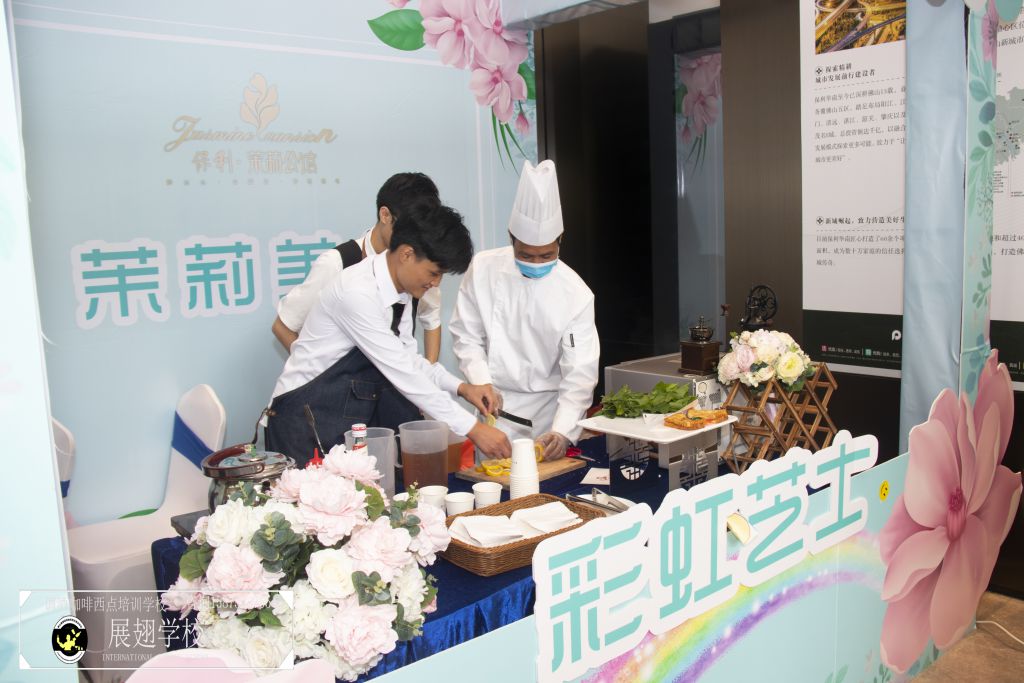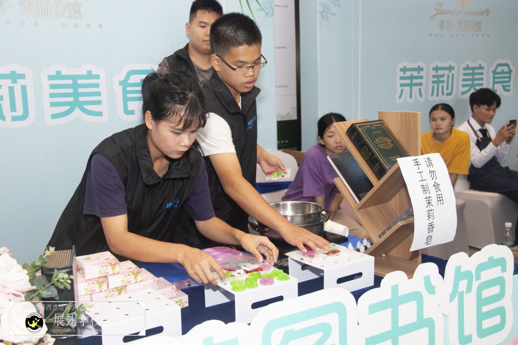 不斷受光顧,不斷有賓客嘗試,一側的小攤漸成全場焦點,雖然都是來看樓盤,但是也都來享受美食與香氣!本次活動,佛山展翅咖啡調酒西點培訓學校的西點學員受邀為全場嘉賓提供美味可口的面包,并在旁邊的香味圖書館展示并提供香味獨特的多種香皂,兩者都是細致的活兒,需要精密入微的心思才能做好。就好比一個音樂家,要想讓全場陶醉于自己的音樂,首先要自己完全投入到彈奏的曲子中,把“自我”放得很低,很謙卑,但是我的音樂藝術至高無上。做面包做香皂又何嘗不是如此呢?佛山展翅的西點學員都有著較高的職業素養,現場的服務周到而且顯出獨卓的品質,給人一種茉莉花香沁入心脾般的舒適感,受到全場嘉賓好評!