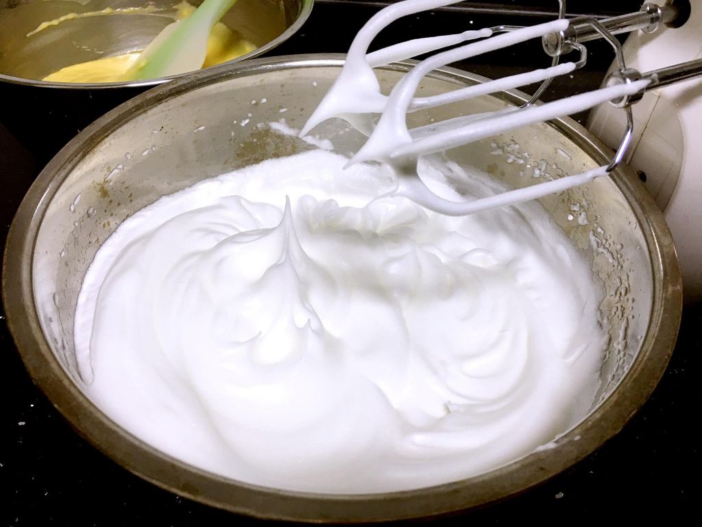 但是,海綿蛋糕的制作方法不一定都一樣,由此,打發蛋白或者全蛋就因蛋糕款式不同而有不同要求。比如制作法式海綿蛋糕就要全蛋隔水加熱打發,一開始攪打蛋白,起大泡沫后加入1/3的白糖,繼續打發。當泡沫稍微變的細膩是加入第二個1/3,繼續打發。當蛋白霜開始呈現出花紋時加入剩余的白糖,繼續打發至中性發泡。