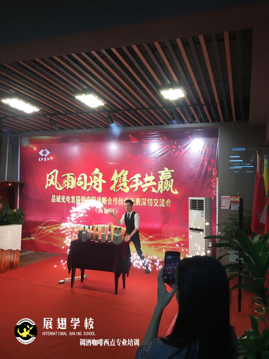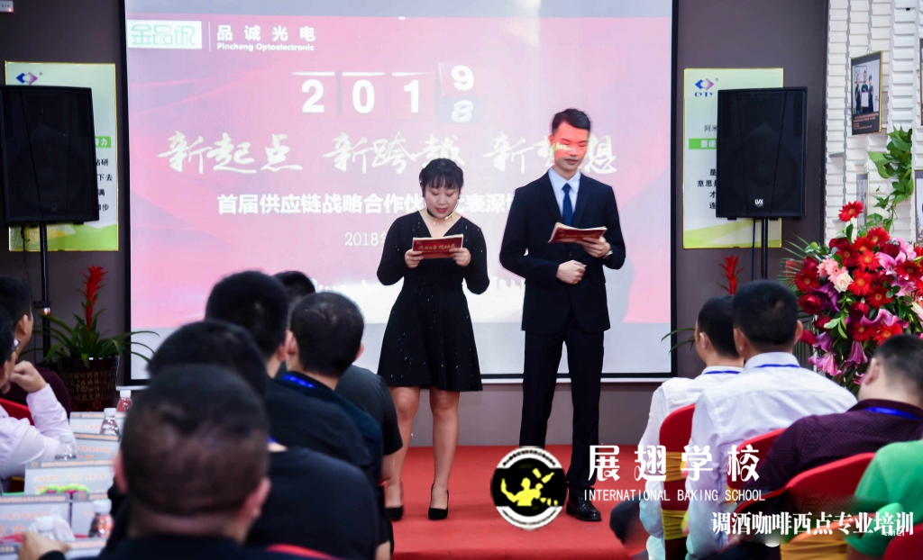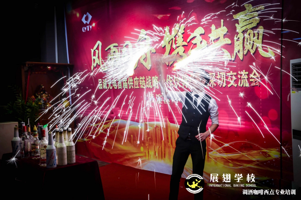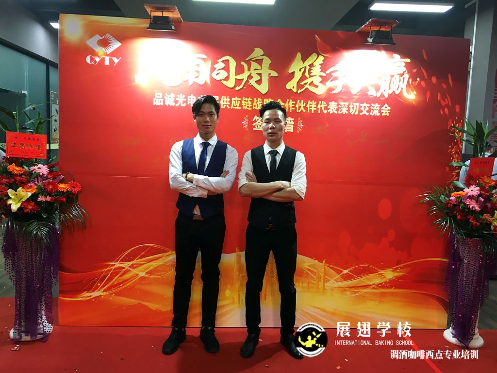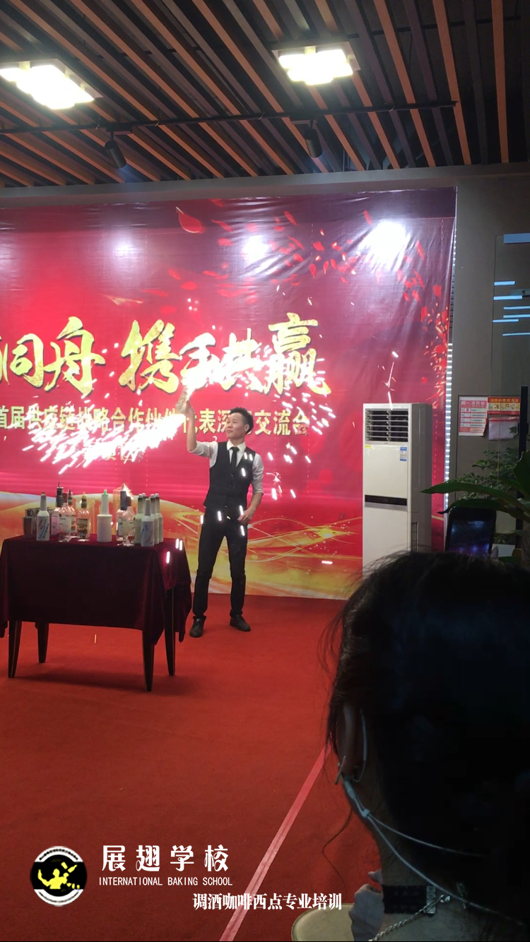 <佛山展翅調酒咖啡西點培訓學校>調酒師朱歡洪&謝克朗受邀出席中山品誠光電交談會,并擔任活動現場花式調酒演出嘉賓。如果你想成為一名優秀的花式調酒師,要不斷的實踐、學習、讓自己擁有更豐富的技能知識http://m.ourdy.cn