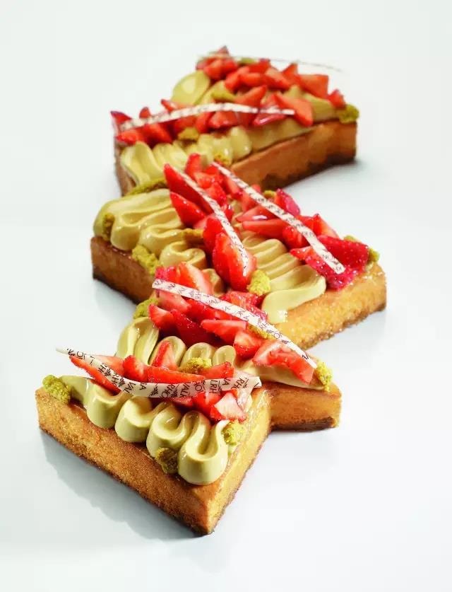 領口的法國國旗顏色,不僅是一份榮譽,也是對他的專業技藝的一種肯定。從17歲入行,到32歲獲得MOF的榮譽,在十多年的時間里,經歷過的種種艱辛恐怕只有他自己知道。紛繁復雜的甜點背后,是枯燥的基本功和基礎操作,每一個讓人嘖嘖稱奇的創意作品得來不易。