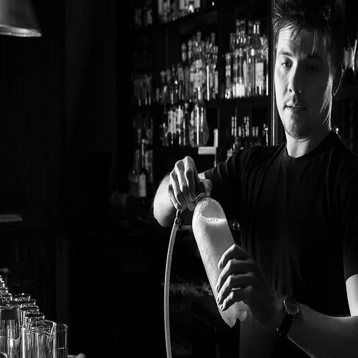 EC的許多雞尾酒都會使用訂制的設備進行充氣,然而充入的并不是碳酸氣,而是氮氣。因為根據戴夫和李的研究,氮氣會讓雞尾酒的氣泡更為細膩并且還能帶來一絲甜味。