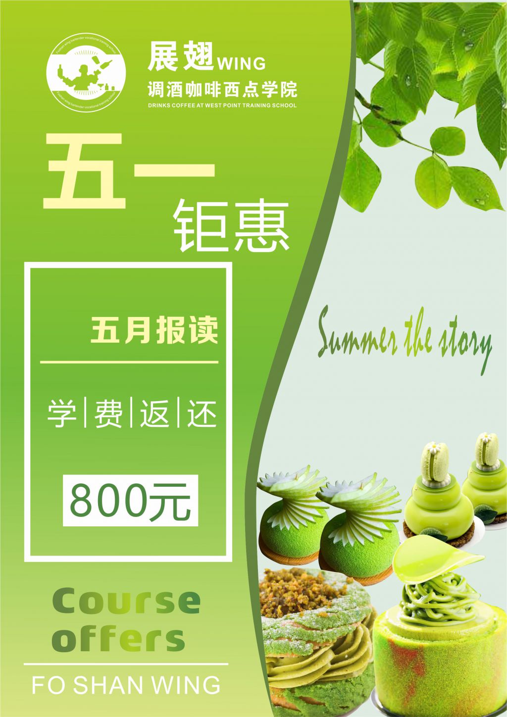 五一勞動(dòng)最光榮,五一小長(zhǎng)假馬上結(jié)束了!為了感恩與回饋廣大學(xué)子們的支持與信賴,展翅調(diào)酒咖啡西點(diǎn)培訓(xùn)學(xué)校與你相約"5·1",凡是在5月活動(dòng)中報(bào)名都可享受學(xué)費(fèi)返還800元