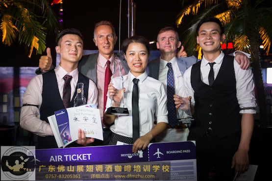 宋艷琳(中間),2016莫林杯調酒大賽中國區總決賽冠軍。Song Yanlin (centre), 2016 Monin Cup China winner.